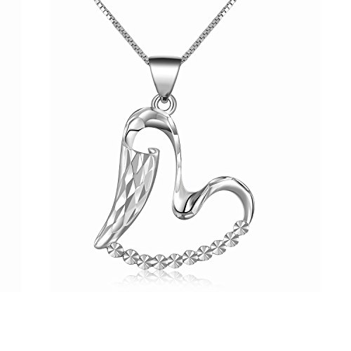 MaBelle offer 14ct White Gold Gothic Phoenix Feather Angel Wing Heart With Diamond-Cut Necklace of Length 40 cm/ 16 Inch, Valentines Day Women Gift. This awesome product currently limited units, you can buy it now for £260.00 £180.99, You save £79.01