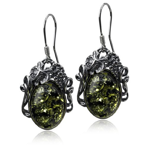 Best Seller! Black Green Amber Sterling Silver Oval Vintage Dangle Hook Earrings Review