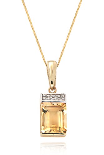 Best Seller! Carissima Gold 9 ct Yellow Gold 0.54 ct Diamond and Citrine Pendant on Curb Chain Necklace of 46 cm/18 inch Review