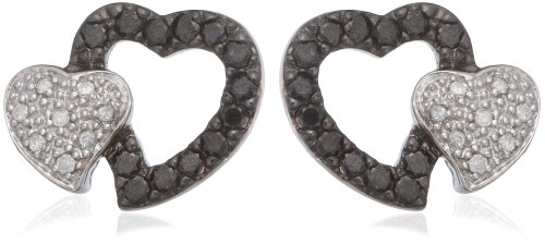 Best Seller! Carissima Gold 9ct White Gold 0.40ct Black and White Diamond Double Heart Stud Earrings Review