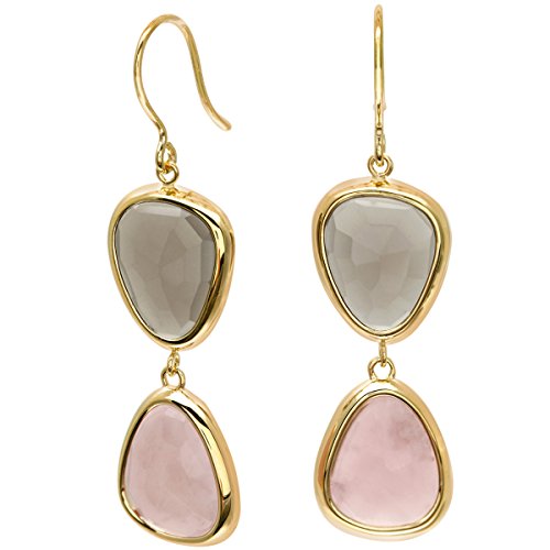 Best Seller! Citerna 9 ct Yellow Gold Drop Earrings with Smokey Quartz and Chalcedony Gemstones of 4.5 cm Review