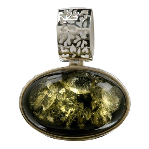 Best Seller! French Collection Luxury Style Green Amber Sterling Silver Large Oval Pendant Review