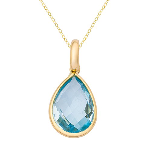 Best Seller! Miore Ladies 18ct Yellow Gold Blue Topaz Teardrop Pendant on 45cm Chain Review