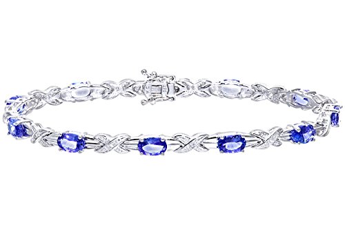 Best Seller! Naava Women's 0.05 ct Diamond with Tanzanite 4 Claw Setting, 9 ct White Gold Link Bracelet Review