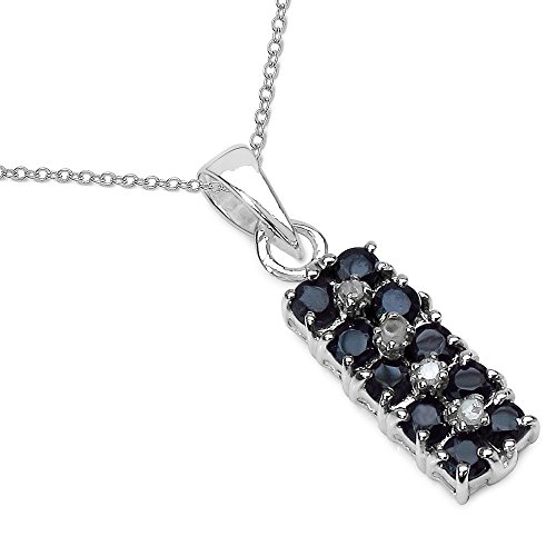 Best Seller! Silvancé - Women's Pendant Necklace 18" - 925 Sterling Silver - Genuine Black Sapphire - P323S Review