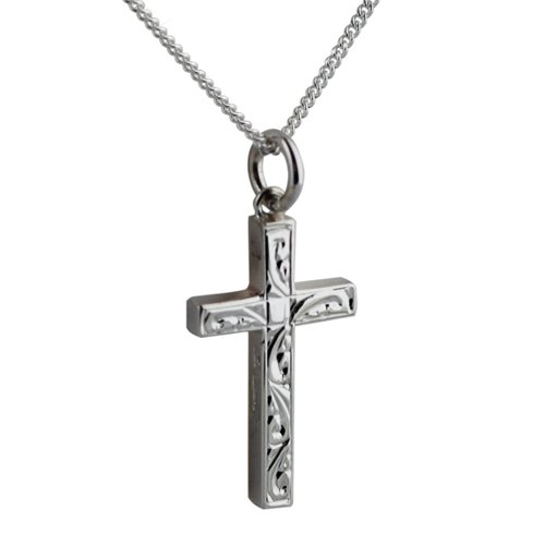 British Jewellery Workshops offer Silver 25x15mm hand engraved solid block Cross with curb Chain 20 inches. This awesome product currently limited units, you can buy it now for , You save -